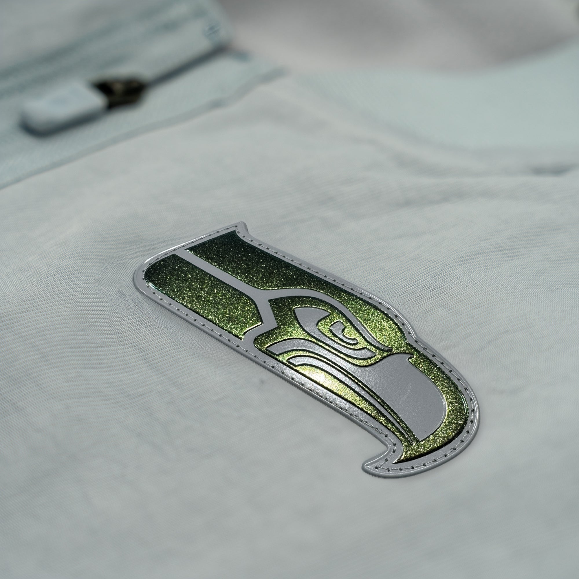 Details: Kleines Seahawks Logo, „SEAHAWKS“ Print, metallische Akzente