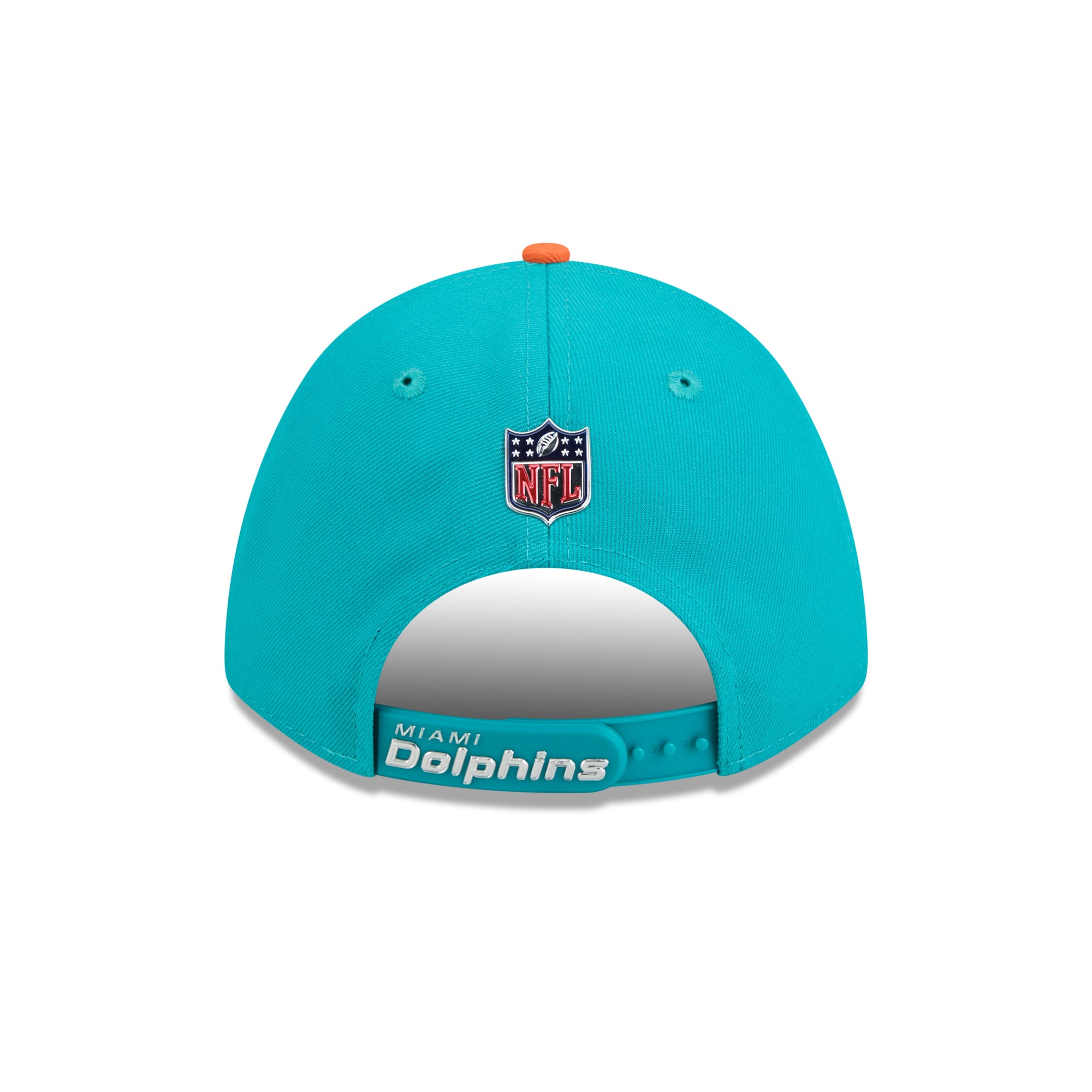 Snapback Highlight: Der verstellbare Riemen hinten trägt den Dolphins Schriftzug in glänzendem Metal Chrome.