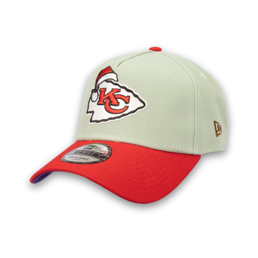 Kansas City Chiefs Limited Christmas Edition New Era 9FORTY A-Frame NFL Cap Grün StadiumDreams Exclusive
