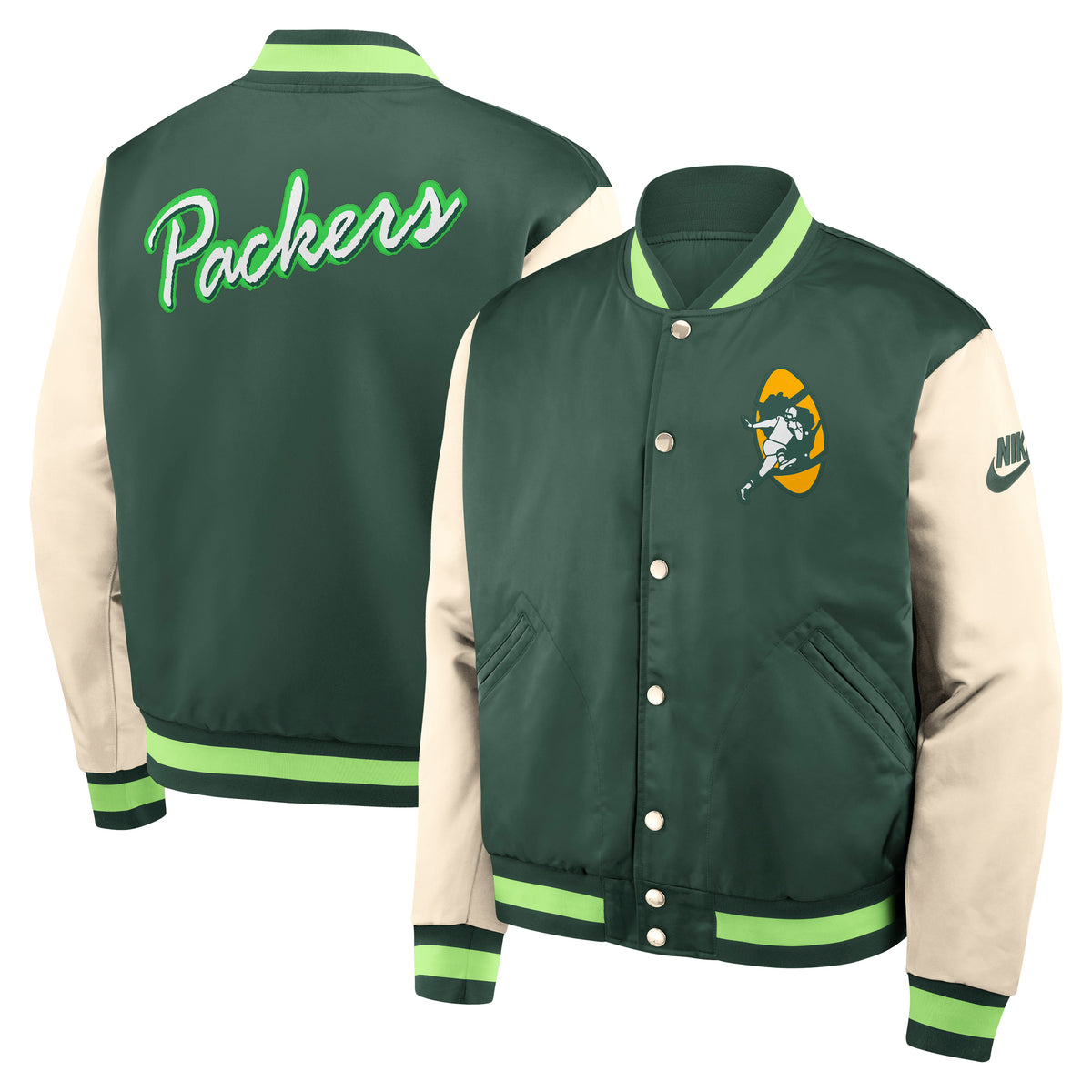 Green Bay Packers Nike Rewind Legacy Full-Snap NFL Bomber Jacke - Grün